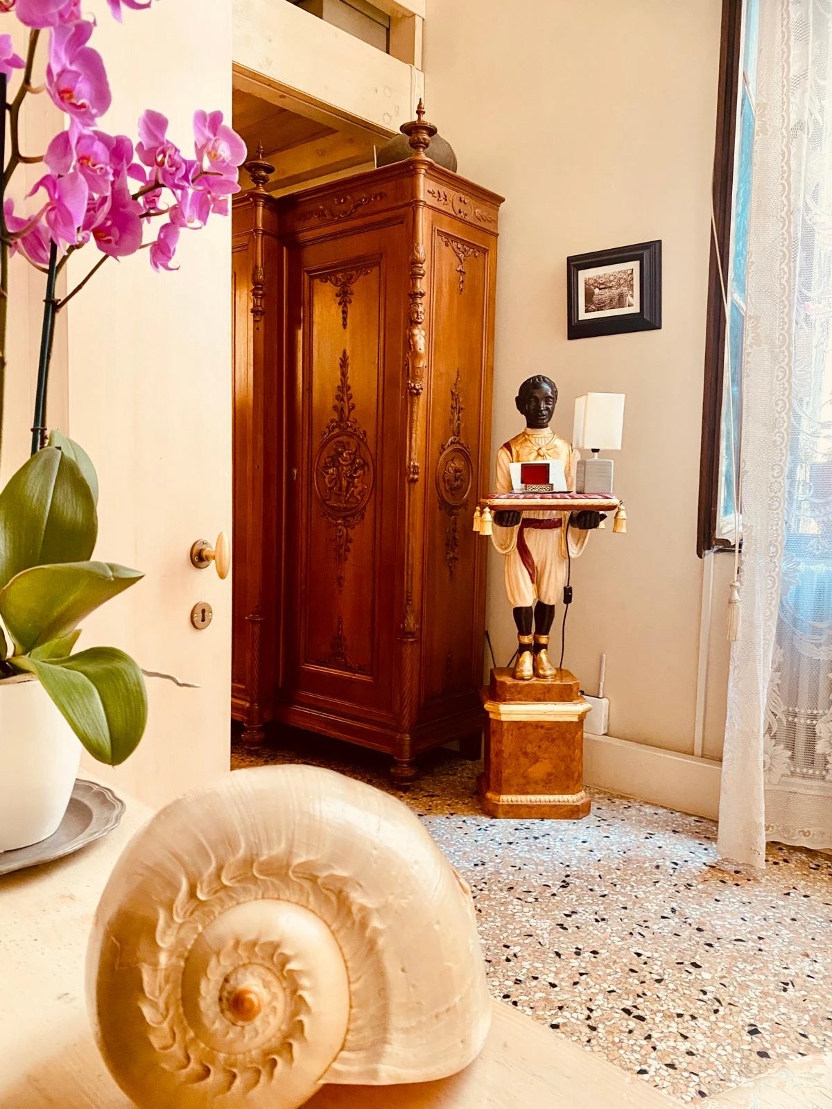 Oggi, Venice Palace Apartment offre un’opportunità unica per vivere la grandiosità della nobiltà veneziana. L’appartamento di 120 m² è situato all’interno di un palazzo storico, nel cuore di Santa Maria del Giglio, a pochi passi dalla fermata del vaporetto. Godetevi il facile accesso ai mezzi di trasporto, alle fermate dei taxi e ai trasferimenti aeroportuali, che renderanno il vostro soggiorno con noi comodo e senza intoppi.